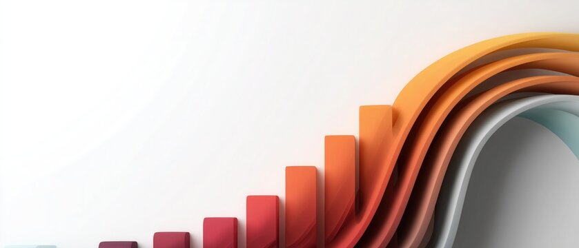 3D colorful gradient graph with rising bars and curved waves, representing data growth and modern tech design, ideal for wallpaper, poster, business analytics, and innovative visual concepts.