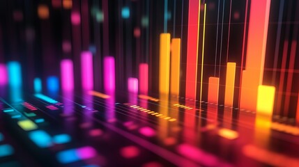 Vibrant abstract data visualization with glowing bars representing statistical analysis trends