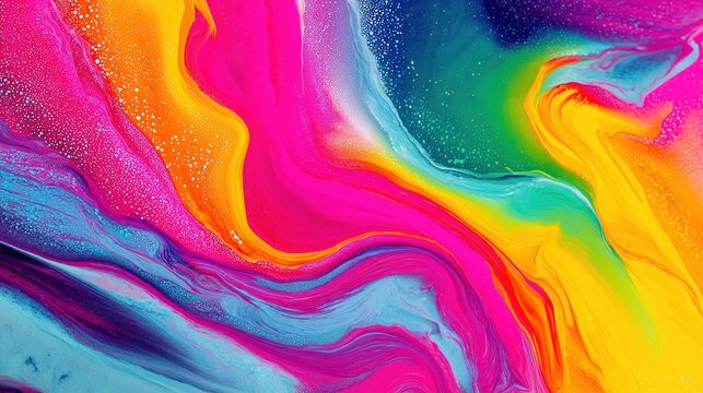 Vibrant abstract fluid waves in bright multicolor swirl