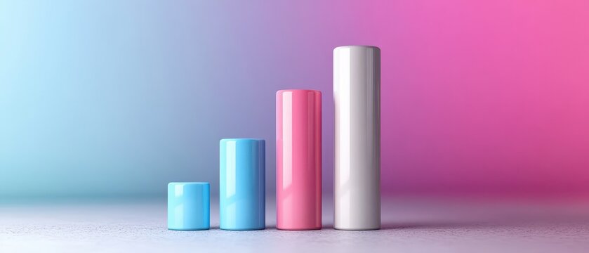 Colorful Gradient Bar Chart in Cylindrical Shapes Representing Growth and Success