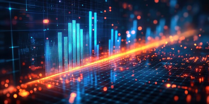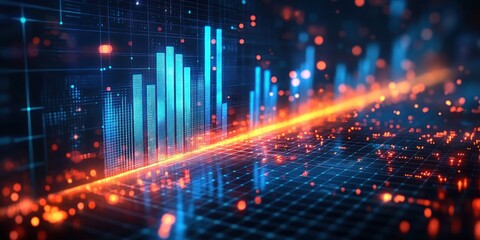 Abstract Financial Data Visualization with Stock Chart Graphs and Vibrant Blue Bars in Modern Digital Design