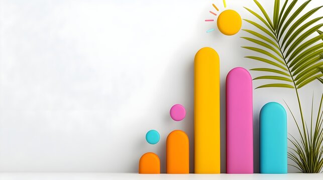 Colorful Bar Graph on White Background with Sun and Plant Elements