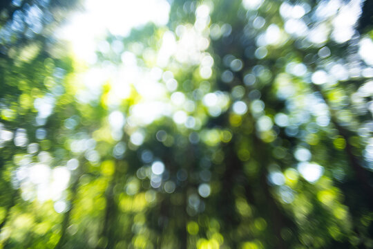 abstract circular green bokeh background, green nature spring and nature light in blurred style, copy space