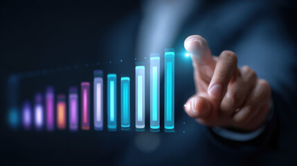 Digital interface data visualization business analytics technology growth progress statistics financial analysis modern touchscreen user interaction colorful futuristic graphs metrics performance