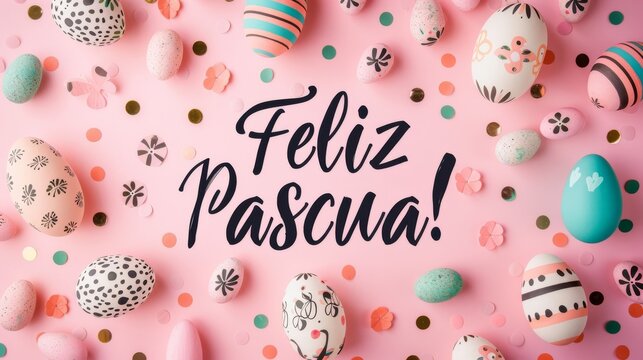 Happy easter message with festive egg pattern background