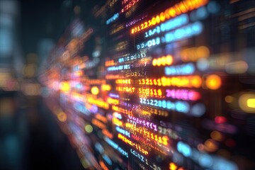 Abstract depiction of digital data stream, vibrant colors, and bokeh effect