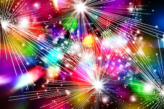 Blurred view of abstract bright colorful background with sparks and bokeh effect