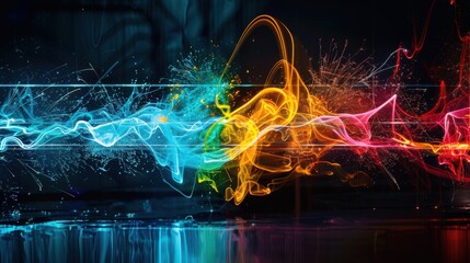 Abstract Background Featuring Falling Rainbows and Holographic Light Rays