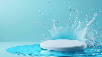 Abstract splash in water with a circular platform for creative presentations.