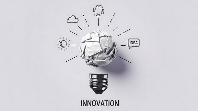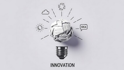 Crumpled paper on lightbulb with innovation concept symbols idea creativity