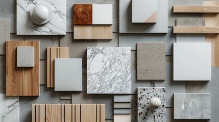 samples of material, wood , on concrete table.Interior design select material for idea.