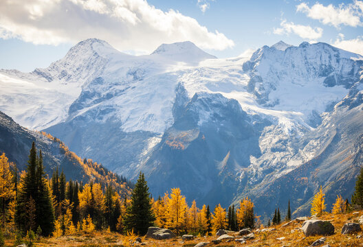Glacier, Mountains and Golden Larch, British Columbia, Canada