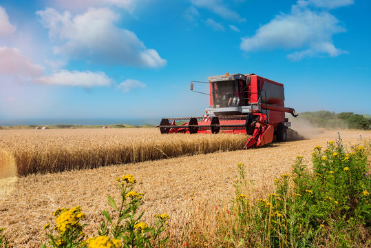 Working parts of new agricultural Harvester machine. Combine harvester agriculture machine.