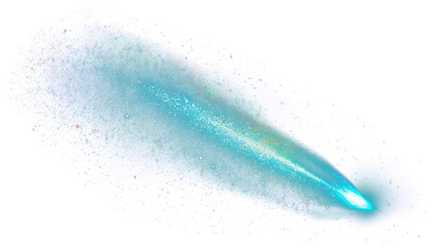 texture of a falling comet with sparks, smoke and a trail of particles, isolated on a black background
