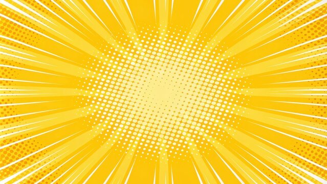 A Bold and Dynamic Comic Book Style Background with a Central Circular Pattern of White Dots on a Vibrant Yellow Radiating Design