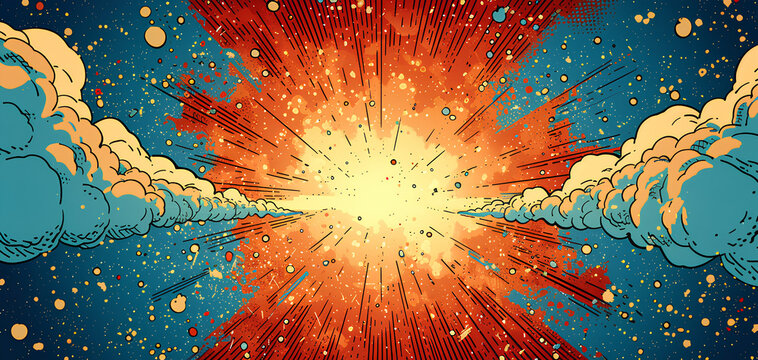 Bold comic book style explosion with bang text
