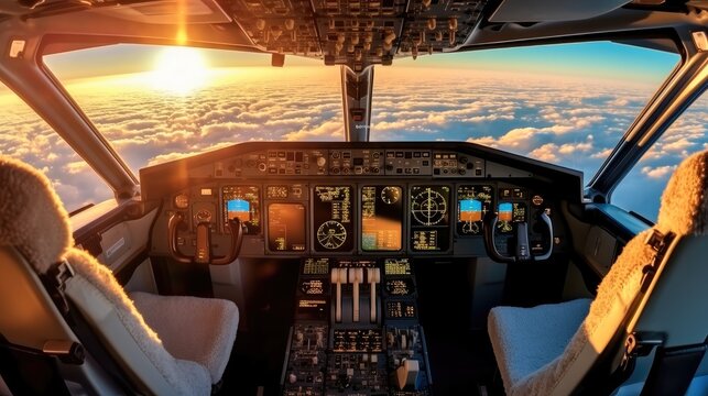 Cockpit of a modern private jet airplane.