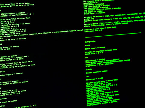 Computer Command Line Interface (CLI). Green code in command line interface on black background
