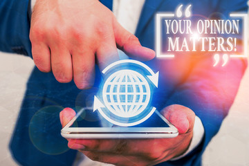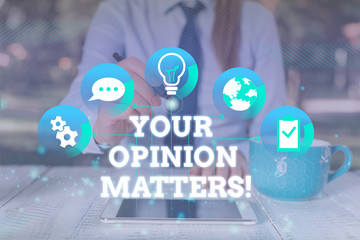 Conceptual hand writing showing Your Opinion Matters. Concept meaning show you do not agree with something that just been said