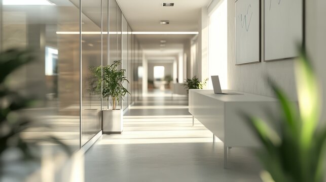 Nice modern office with beautiful long office corridor with and defocused room background concepts and ideas for business presentation background, wallpaper and backdrop ideas for corporate and comme