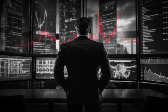 Explore the detailed setup of a stock trader's desk, featuring live global stock exchange data and currency rates across multiple screens, highlighting intense focus and strategic decision-making.