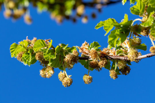 The flowers of Fagus sylvatica, the European beech or common beech