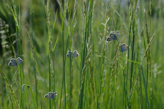 The common blue butterfly (Polyommatus icarus), male perching on verbena