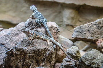 Common Collared lizard (Crotaphytis-collaris) on a rock.