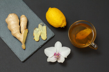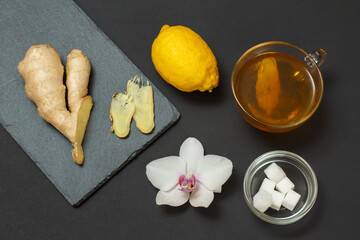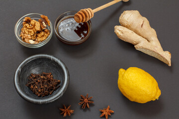 Health remedy foods for cold and flu relief on a black background.