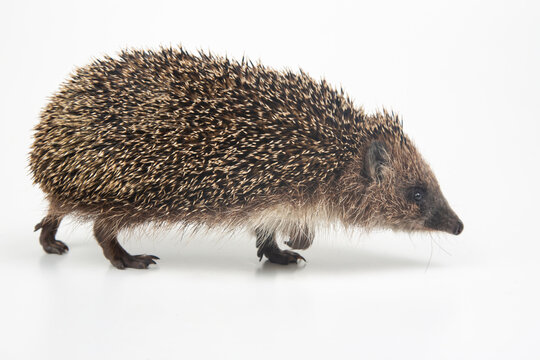 Erinaceus europaeus. Common European hedgehog on a white background