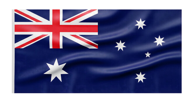 Waving flag of australia featuring the union jack and the commonwealth star emblem.