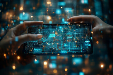 Digital data processing with smartphone in business concept
