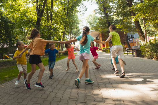 The happy children are having fun in the park