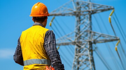 Power line safety inspection urban area construction activity clear sky worker perspective energy sector awareness