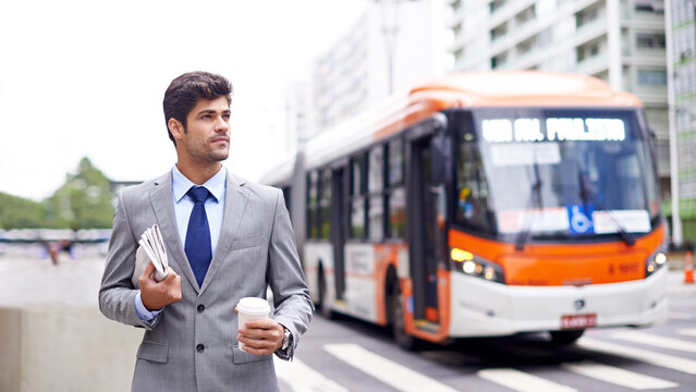 Businessman traveling by bus