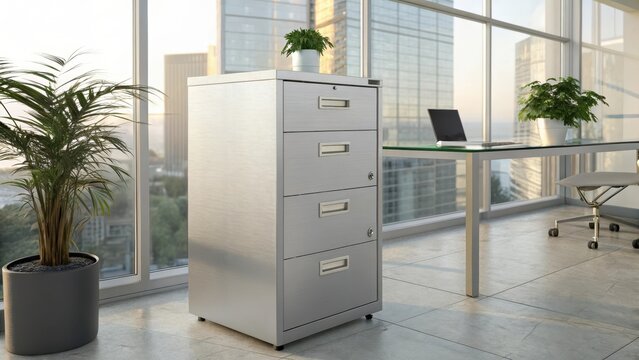 Sleek Aluminum Filing Cabinet Enhancing Modern Office Interior