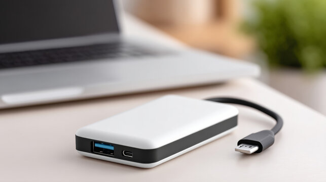 Portable external hard drive for data backup and storage solutions on desk