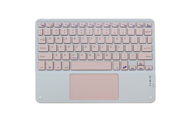 Compact white wireless keyboard on vibrant pink background