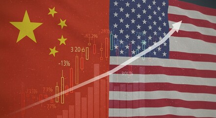 A comparative analysis of the economic performance of two nations, visualized with flags, charts, and a rising trend line.