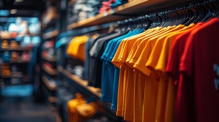 Colorful dresses hanging in clothing store display