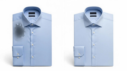 Customer in store has removed hanger with dress from window and is considering product. Girl is thinking about buying, comparing two blouses made in different styles