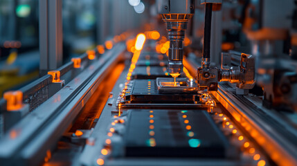 Ev battery production process in a high-tech factory industrial environment focused viewpoint