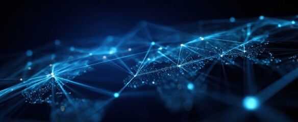 Abstract network visualization with glowing connections and data representation on grid