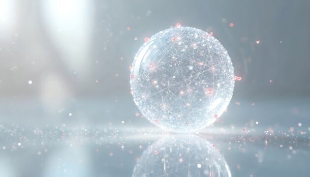 Abstract fiery lines on a dark grid background, creating a sense of data flow, information, or digital connectivity with orange and blue bokeh lights