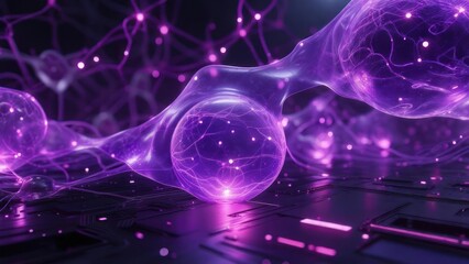 Abstract Purple Energy Network with Glowing Spheres and Connections.