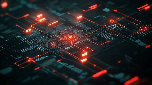Digital Web of Financial Transactions with Anomaly Detected in Red Highlighting Fraud Detection Concept
