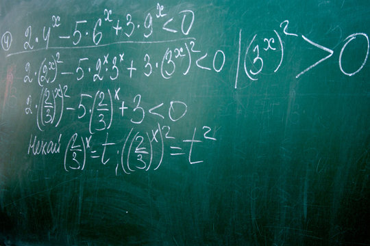 mathematical problem with chalk on the blackboard