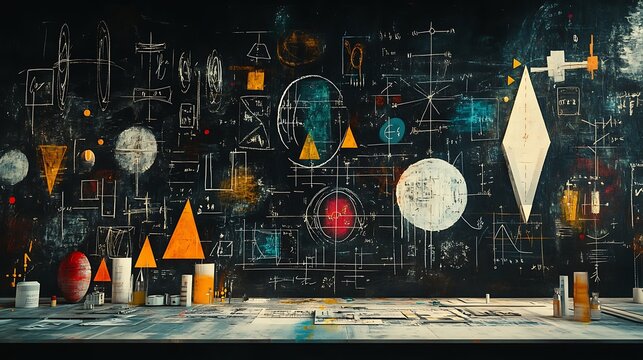 Creative scientific formula illustration on modern computer background, science and research concept. Multiexposure