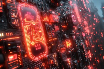Futuristic Red Illuminated Tech Panel Circuitry Design