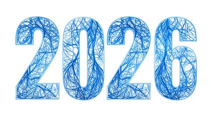 Year 2026 illustrated with icy, interconnected blue vein-like patterns